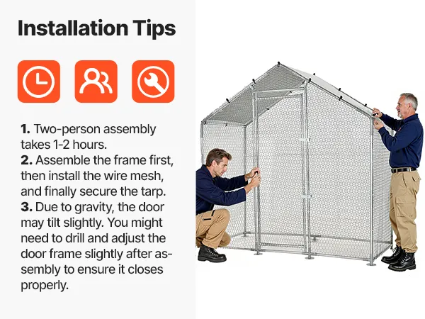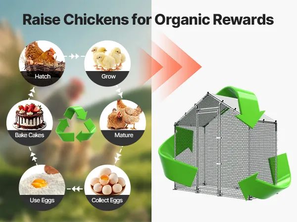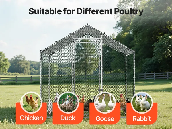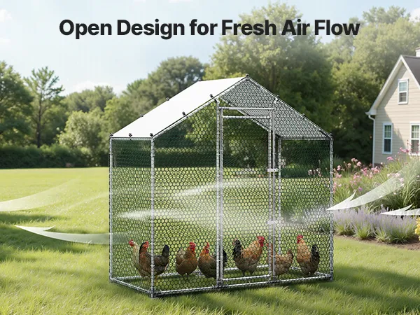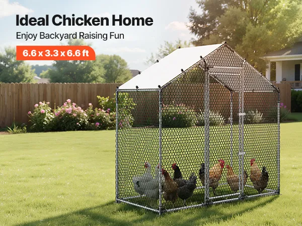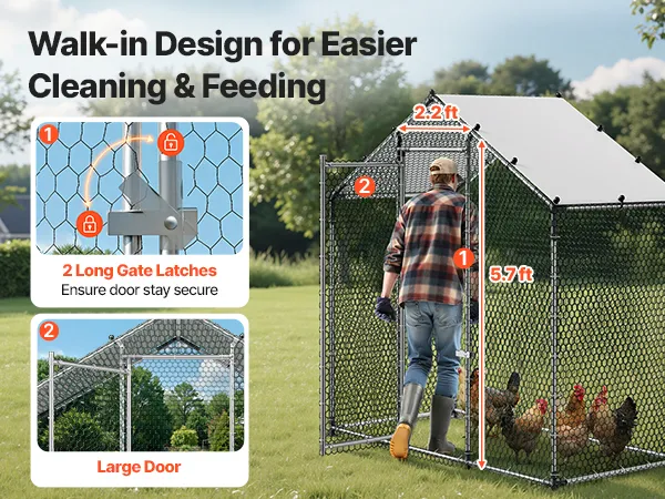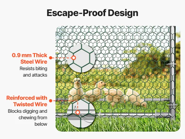 Verbeterde bescherming: ons inloopkippenhok is voorzien van dik, zeshoekig gaas dat met kabelbinders is vastgezet om te voorkomen dat kippen ontsnappen. De vloer is voorzien van spiraalvormig gewikkeld gaas en verlengde deursloten om roofdieren zoals wasberen en vossen af te schrikken.