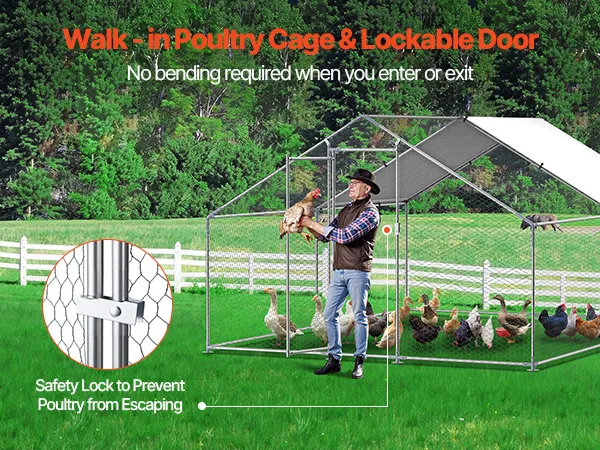 With 1" thick steel pipes and hexagonal protective mesh, this walk in chicken run offers robust support and protection, ensuring the poultry can roam freely in a secure environment.