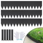 You will receive 3 pcs landscape lawn edging, 5 fixing clips, and a pair of installation gloves. Each fence measures 40x8 inch, and the extended spike makes it easier to secure in the ground. They prevent weed growth and keep your garden looking tidy and well-maintained.