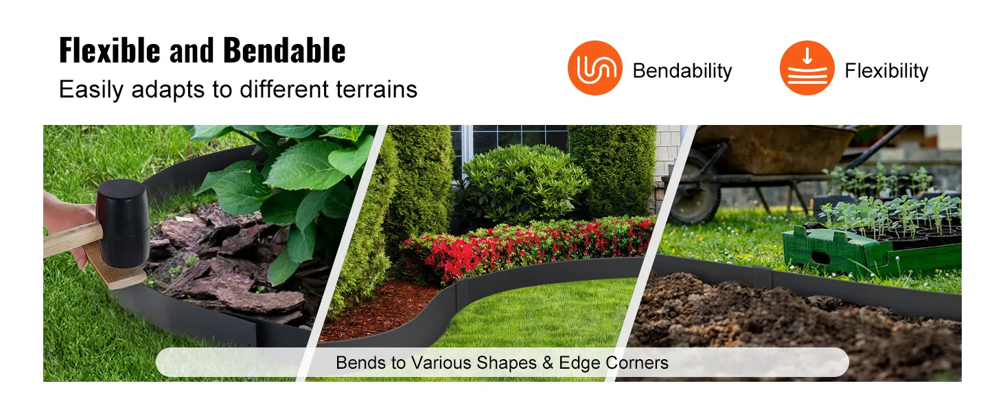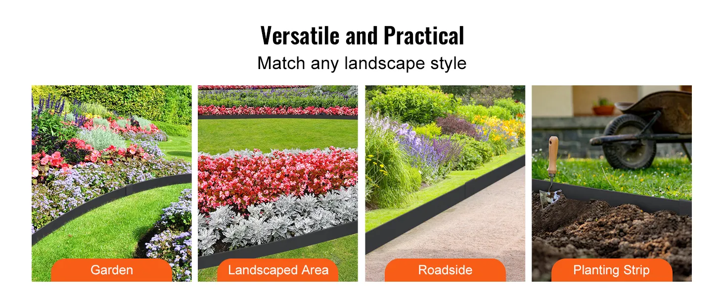 Flexible and Easy to Bend: With its bendable and flexible design, you can easily shape this steel garden edging border to fit your garden, whether it's square, circular, or any complex shape. It won't break or damage during bending.