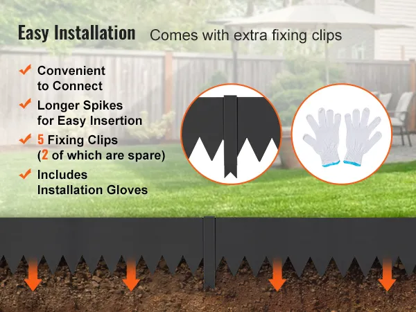Simple Installation: Installing our landscape lawn edging is a breeze. Connect the sections with the fixing clips, and you'll have it set up in just minutes. We also include installation gloves for added safety.