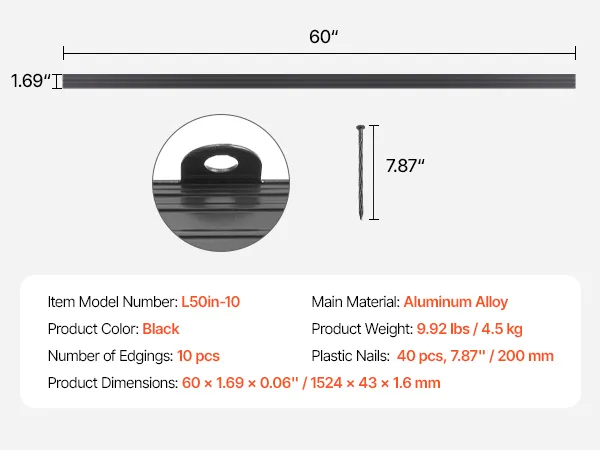 Complete set voor eenvoudige installatie: Uw set bevat 10 bloemperkranden, 1 paar installatiehandschoenen, 40 kunststof spijkers en een duidelijke instructiehandleiding, zodat u uw rand snel kunt plaatsen en langer kunt genieten van uw prachtige tuin.