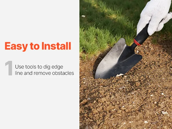 Eenvoudige installatie: Het installeren van uw tuinrand is een fluitje van een cent! Bevestig elk stuk eenvoudig met de meegeleverde spijkers en extra beugels voor extra stabiliteit. Voor de installatie is geen speciaal gereedschap nodig. (Let op: Vanwege het ontwerp van de glijrail overlappen de onderdelen elkaar enigszins, waardoor de daadwerkelijk geïnstalleerde lengte korter zal zijn dan de totale lengte die is aangegeven. Plan dit alstublieft voordat u tot aankoop overgaat.)