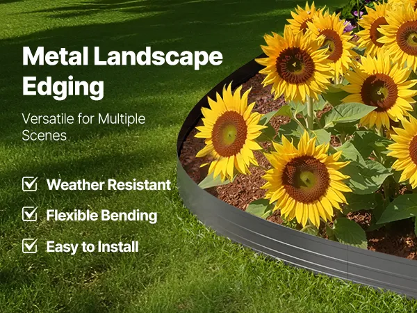 Onze metalen tuinafscheidingen zijn gemaakt van aluminiumlegering met roestbestendige poedercoating en zijn bestand tegen alle omstandigheden. Ze zijn eenvoudig te installeren en flexibel genoeg om in elke gewenste vorm te worden gevormd. Ze zijn ideaal voor het aanleggen van borders in tuinen en langs wegen. Een effectieve oplossing om uw tuin schoon te houden.