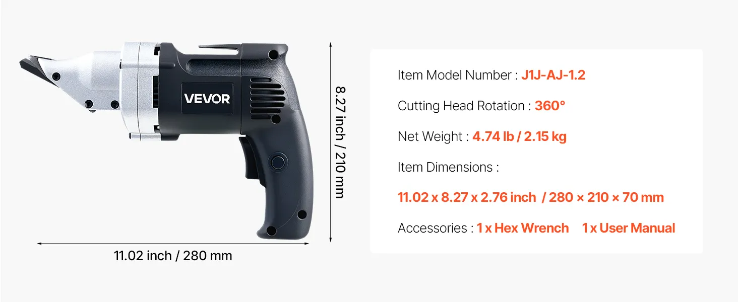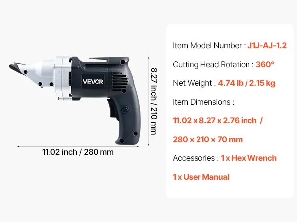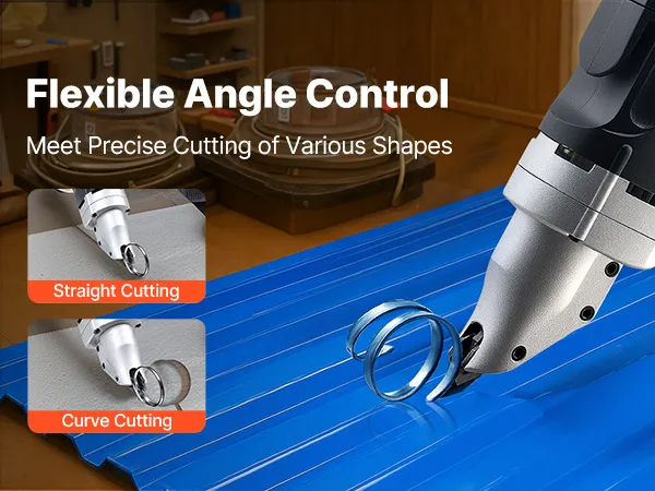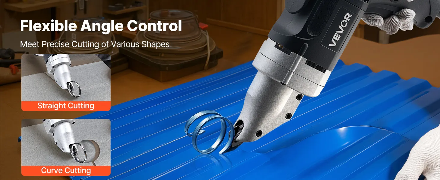 Flexibel 360-graden snijden: Dankzij de 360-graden roterende kop kan deze elektrische metaalsnijmachine rechte lijnen, rondingen en onregelmatige vormen aan. Pas de hoek en richting aan voor nauwkeurig en efficiënt snijden, waarmee u complexe taken eenvoudig kunt aanpakken.