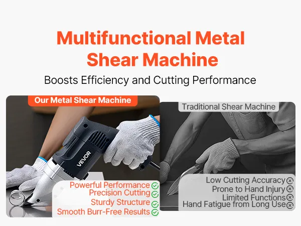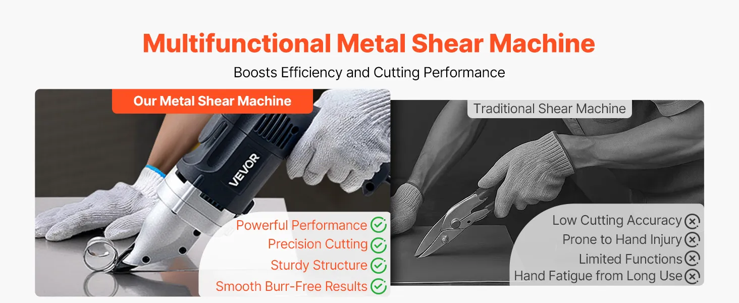 Variabele snelheid: Uitgerust met variabele snelheidsregeling, is lichte druk geschikt voor het snijden van dun plaatmateriaal, terwijl zware druk geschikt is voor dikkere materialen. Of het nu gaat om roestvrij staal van 18 GA, kunststof, karton, rubber of leer, het zorgt voor efficiënte sneden.
