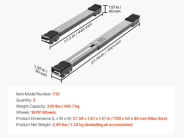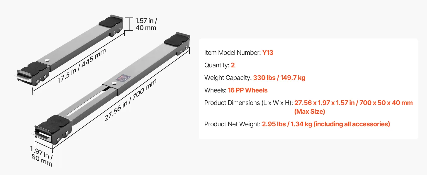 With a range from 17.5 to 27.6 inches, the appliance rollers adjust to fit a variety of appliances, making it ideal for different sizes and shapes.