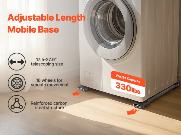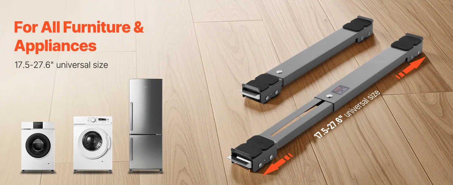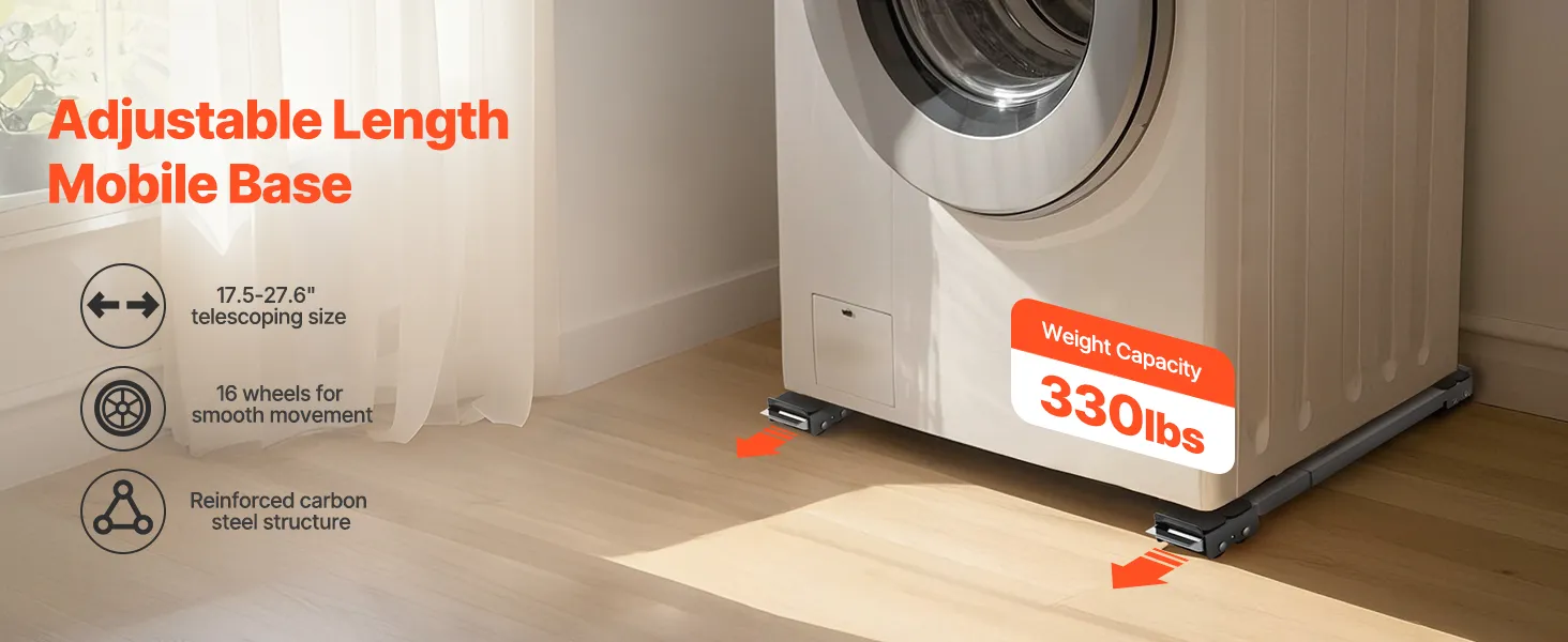 This adjustable mobile base helps you easily move heavy appliances like washers, dryers, and refrigerators with ease.