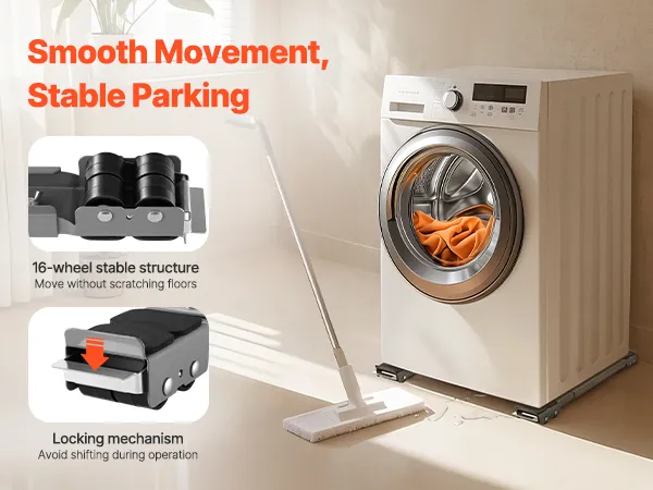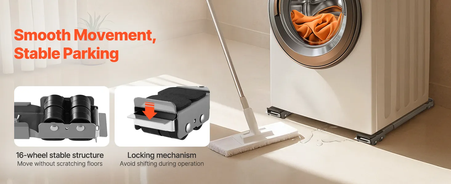 Our appliance mover is equipped with 16 wheels and a locking mechanism. It provides smooth movement and stability, ensuring your appliances stay in place even during operation.