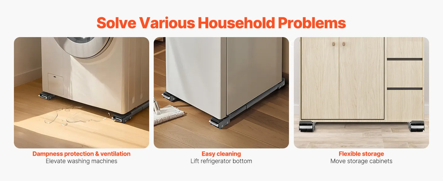 Wide Application: Whether it's a washing machine, dryer, adjustable desk, or fridge, this base fits a variety of appliances, making your home life more convenient.