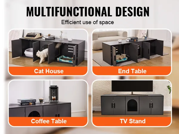 Providing a private and cozy space for your cat, this cat litter box enclosure not only effectively hides the litter box, but also keeps air fresh. Its elegant design blends perfectly with home décor and is both practical and beautiful, allowing you to place both decorative and everyday items.