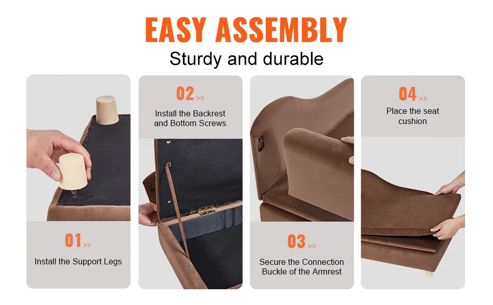 Bouw uw hondensofa in slechts vier eenvoudige stappen! Van het bevestigen van de poten, het vastdraaien van de schroeven tot het plaatsen van het kussen, elke stap is eenvoudig.