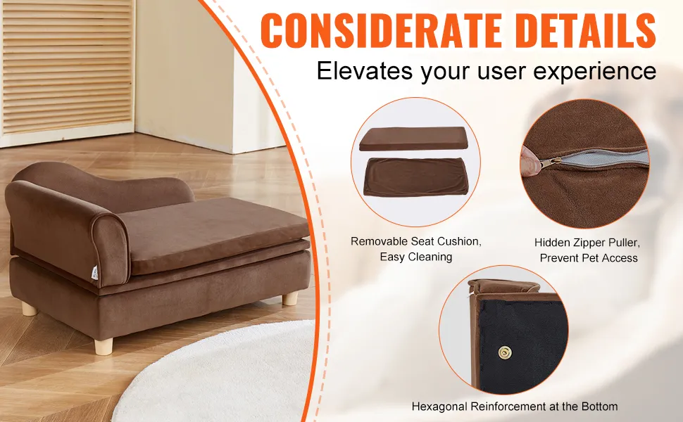 VEVOR Hondensofa 760 x 450 x 415 mm Hondenbank voor middelgrote honden en katten Zacht fluweel Hondenslaapbank 36 kg Zwaar uitgevoerde kattensofa Hondenbed Huisdierbed Donkerbruin