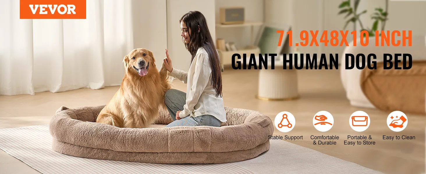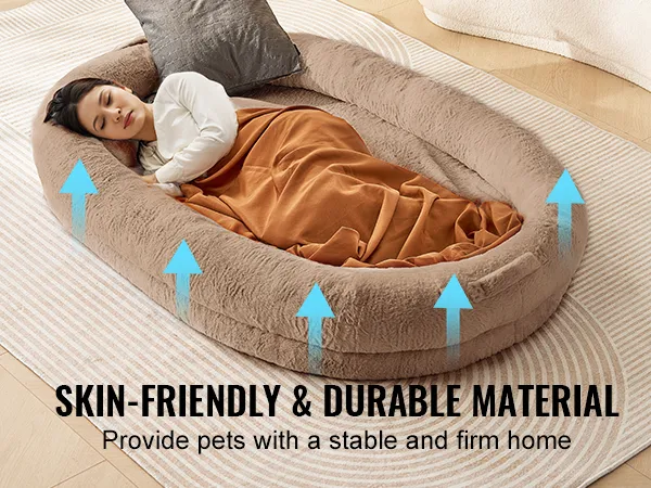 Gemakkelijk schoon te maken: ons hondenbed voor mensen is voorzien van een hoes met ritssluiting die gemakkelijk te verwijderen is en geen montage vereist. Om schoon te maken hoeft u alleen maar de rits open te ritsen, de zachte hoes te verwijderen en in de machine te wassen, wat eenvoudig en probleemloos is.