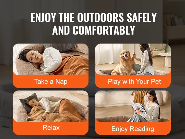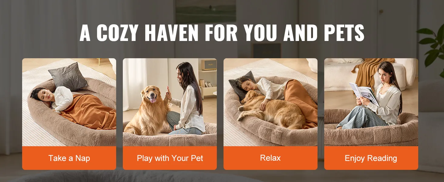 MULTIFUNCTIONEEL: Het hondenbed op mensenmaat biedt een gezellige oase voor ontspanning en verlichting van angst. Geniet van lezen, spelen en gelukkige momenten met uw huisdier. Het dient tevens als slaap- of dutjebed en is geschikt voor in de woonkamer, slaapkamer of zelfs op kantoor.