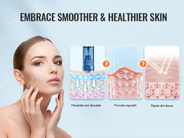 The electric microneedling pen effectively enhances skin texture by stimulating the skin's natural repair processes. With consistent use, it helps to promote skin tissue repair, brighten skin tone, enhance skin elasticity, and achieve smoother skin.