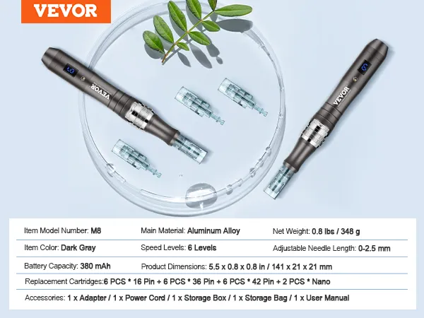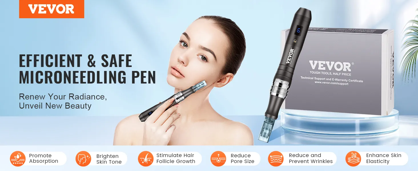 Enhance your skin’s health with VEVOR M8 microneedling pen, designed to boost product absorption, brighten complexion, lighten pores, and improve skin elasticity. Whether you're addressing dull skin or fine lines, this pen delivers noticeable improvements, leaving skin with a radiant glow.