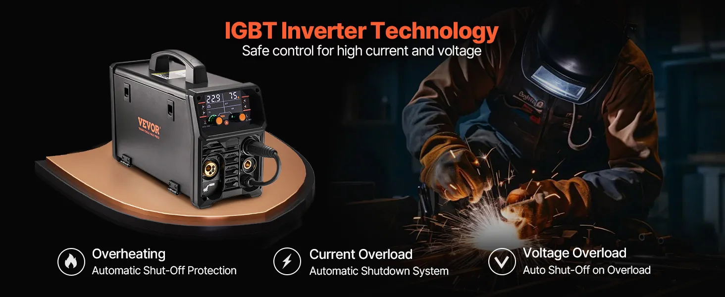 Deze MIG-lasser is voorzien van een geavanceerde IGBT-inverter voor een veilige besturing en garandeert stabiele en betrouwbare lasprestaties. Uitgerust met diverse beveiligingssystemen biedt het een uitgebreide operationele veiligheid.