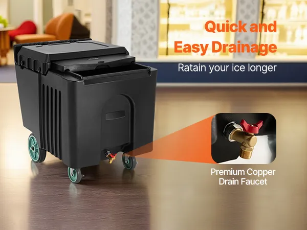 Equipped with a pure copper drain faucet, our ice chest cooler cart efficiently removes excess water to boost insulation and extend the freshness of your ice. The recessed faucet design ensures no interference during transport.