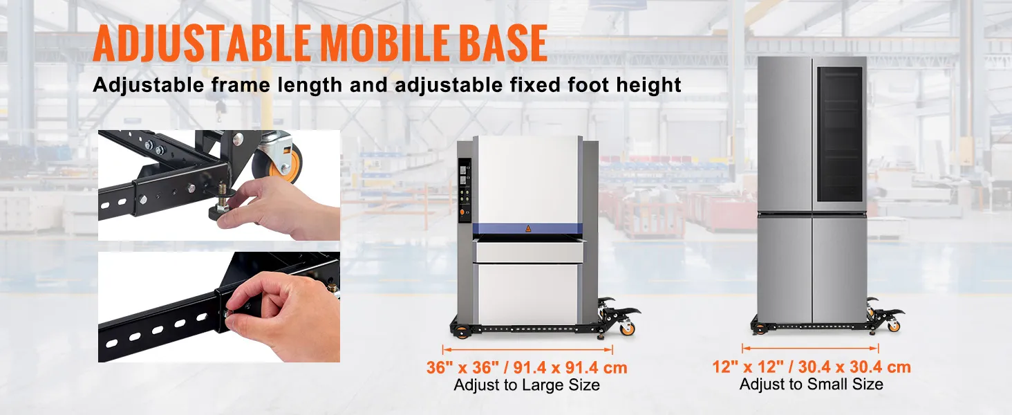 One Base Fits All Sizes: Whether you've got a teeny-tiny table saw or a massive washing machine, our adjustable rods have got your back. Customize the fit and make this heavy-duty mobile base your equipment's new best friend.