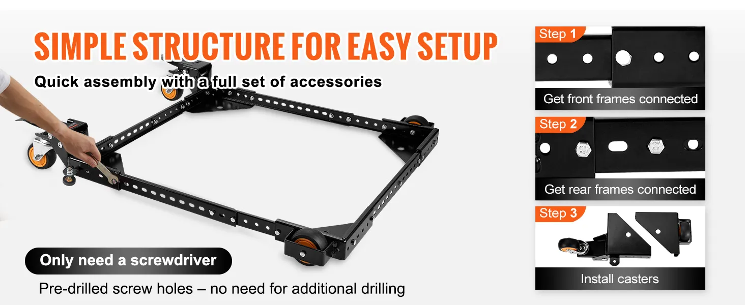 No Tools, No Tears: Leave the toolbox gathering dust. Our heavy-duty universal mobile base snaps together with minimal fuss. Whether you're a DIY enthusiast or someone who can't even pronounce 'hex wrench,' you'll get it set up in no time.