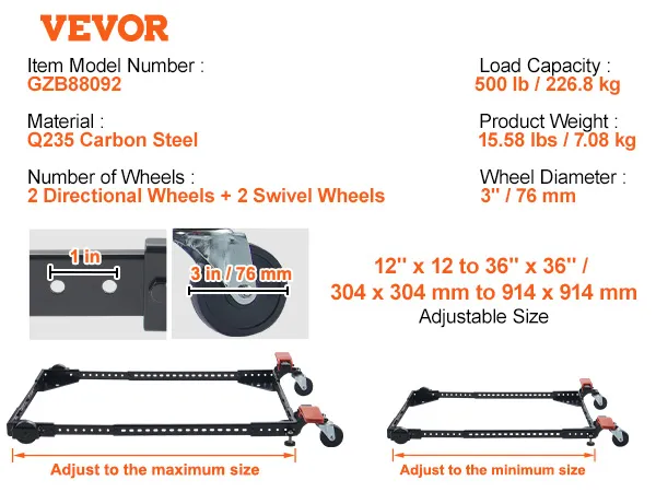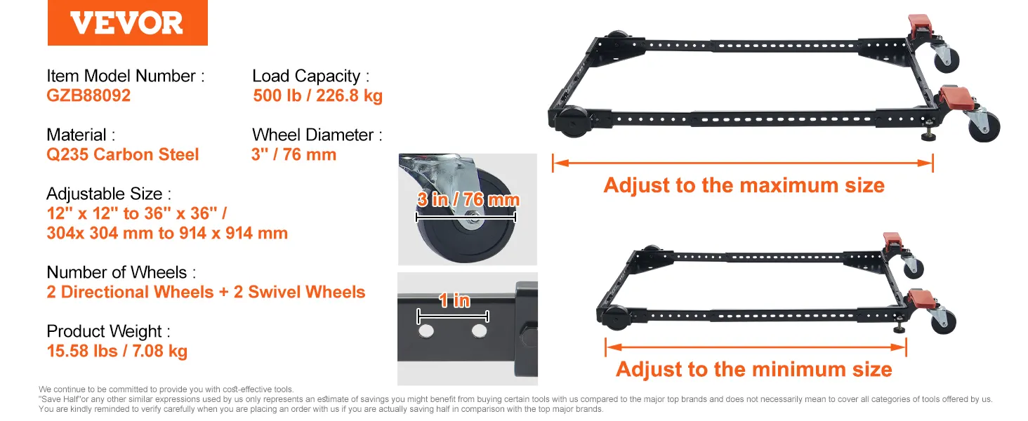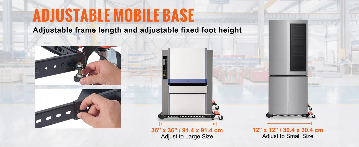 One Base Fits All Sizes: Whether you've got a teeny-tiny table saw or a massive washing machine, our adjustable rods have got your back. Customize the fit and make this heavy-duty mobile base your equipment's new best friend.
