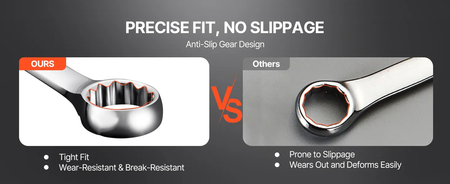 The slip-resistant gear design of our combination wrench set reduces slippage and helps save effort, making your tasks more efficient.