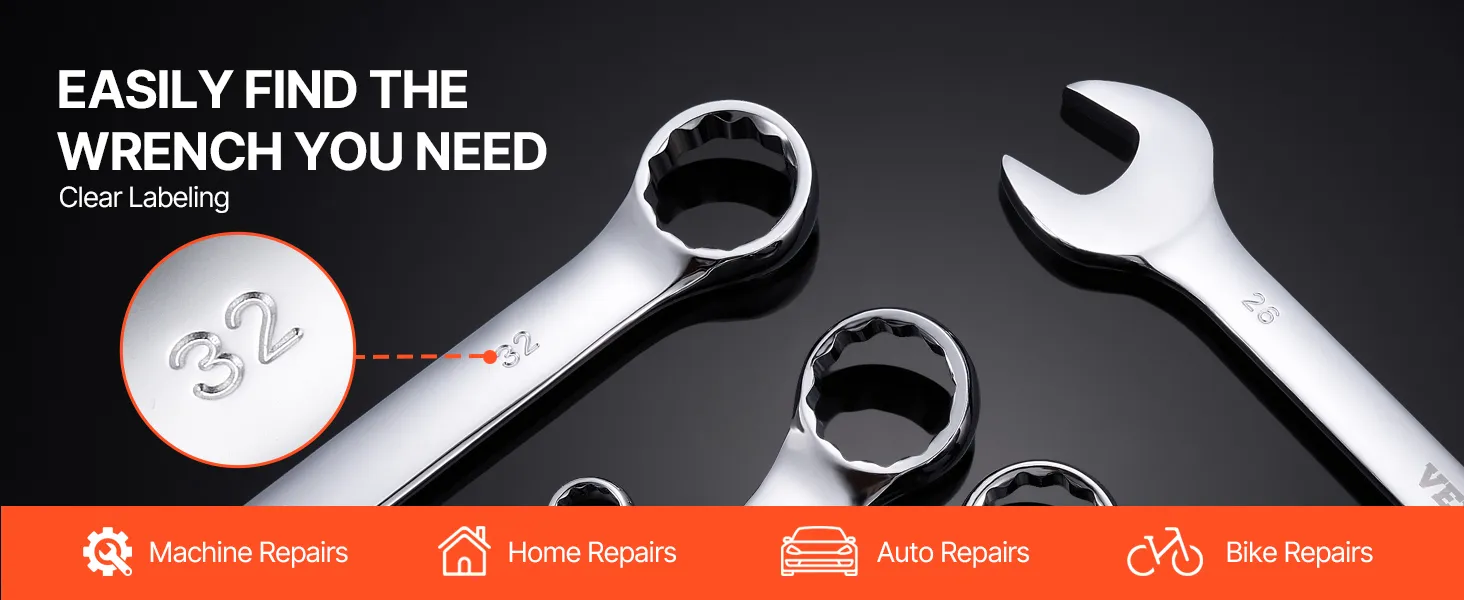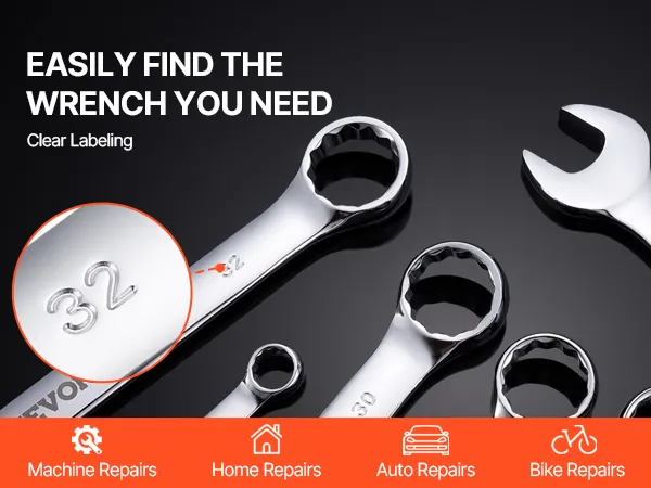 Each wrench in the metric wrench set features clear size markings, allowing you to quickly find the right tool, saving time and hassle during repairs.