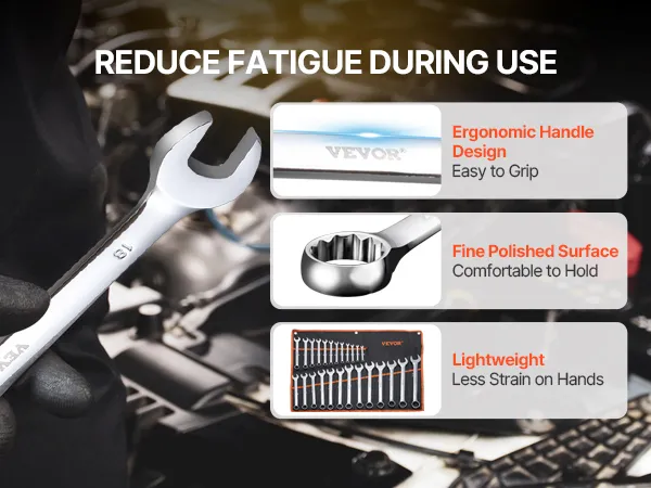 Durable and Sturdy: Our combination wrench set is forged from premium carbon steel and heat-treated for maximum strength. The special coating on the wrench body enhances the erosion-resistant, making the tool solid, wear-resistant, and long-lasting.