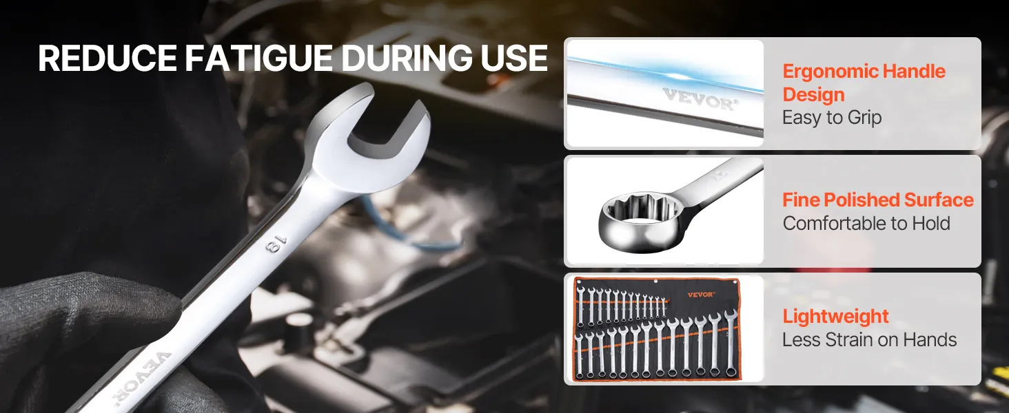 A wrench is an efficient, labor-saving hand tool widely used in mechanical repairs and household maintenance. Our wrench set is specially designed to provide smooth and effortless operation, even in tight spaces, making it an essential choice for both professionals and DIY enthusiasts.
