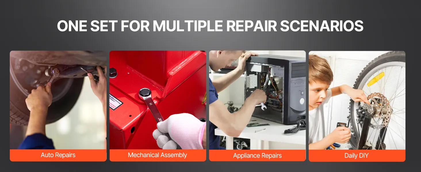 This labor-saving wrenches set is ideal for various tasks, including automotive repairs, mechanical maintenance, and household fixes.