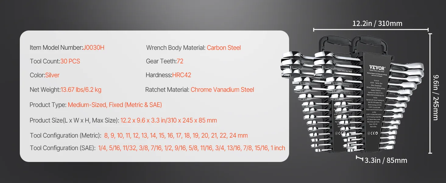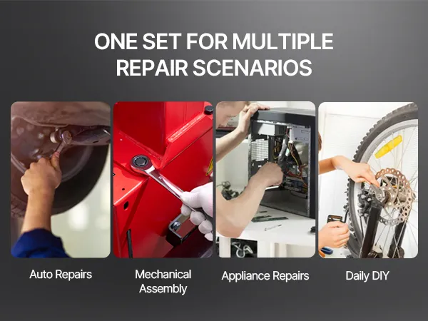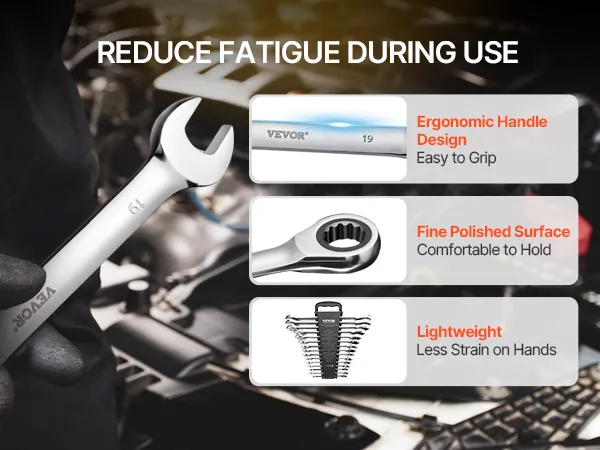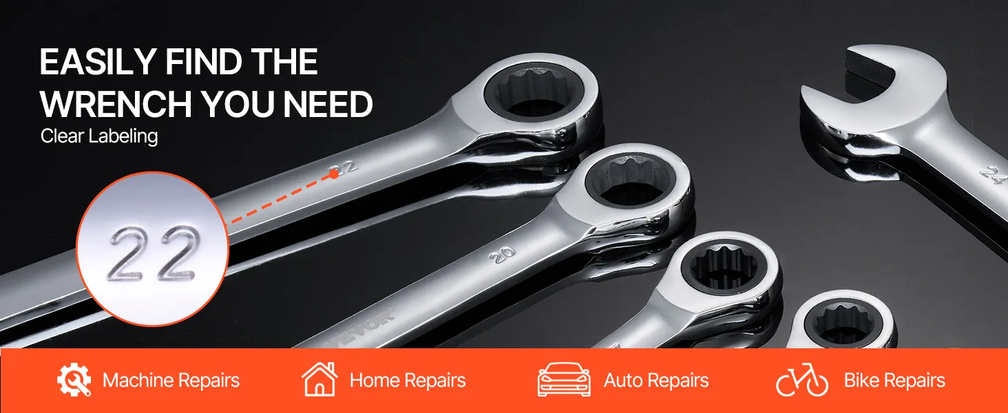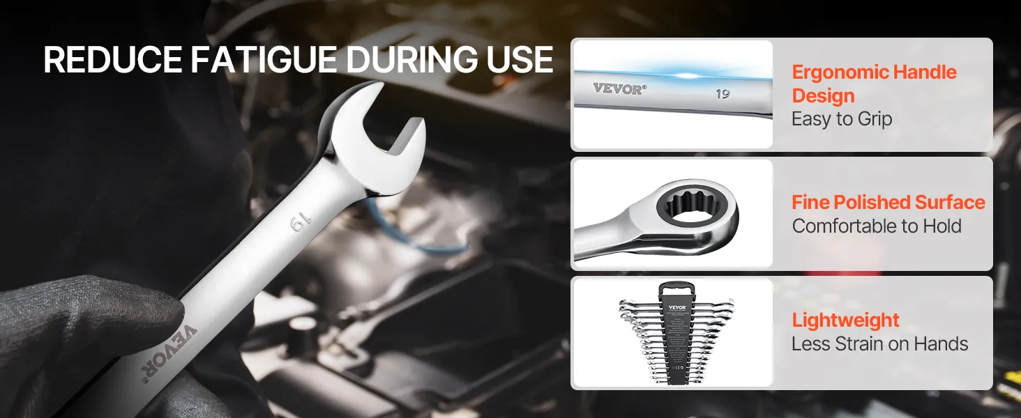Deze arbeidsbesparende ratelsleutelset is ideaal voor diverse klussen zoals: B. Autoreparaties, mechanisch onderhoud en huishoudelijke reparaties.