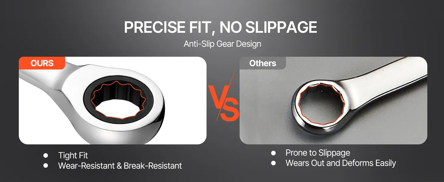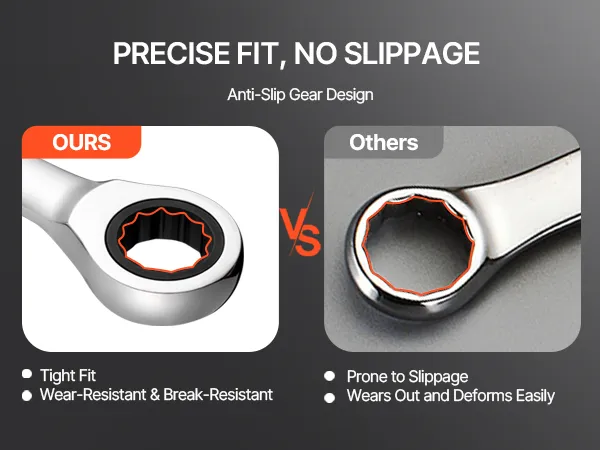 Het antislipontwerp van de combinatiesleutel vermindert uitglijden en helpt u moeite te besparen, zodat u uw werk efficiënter kunt doen.