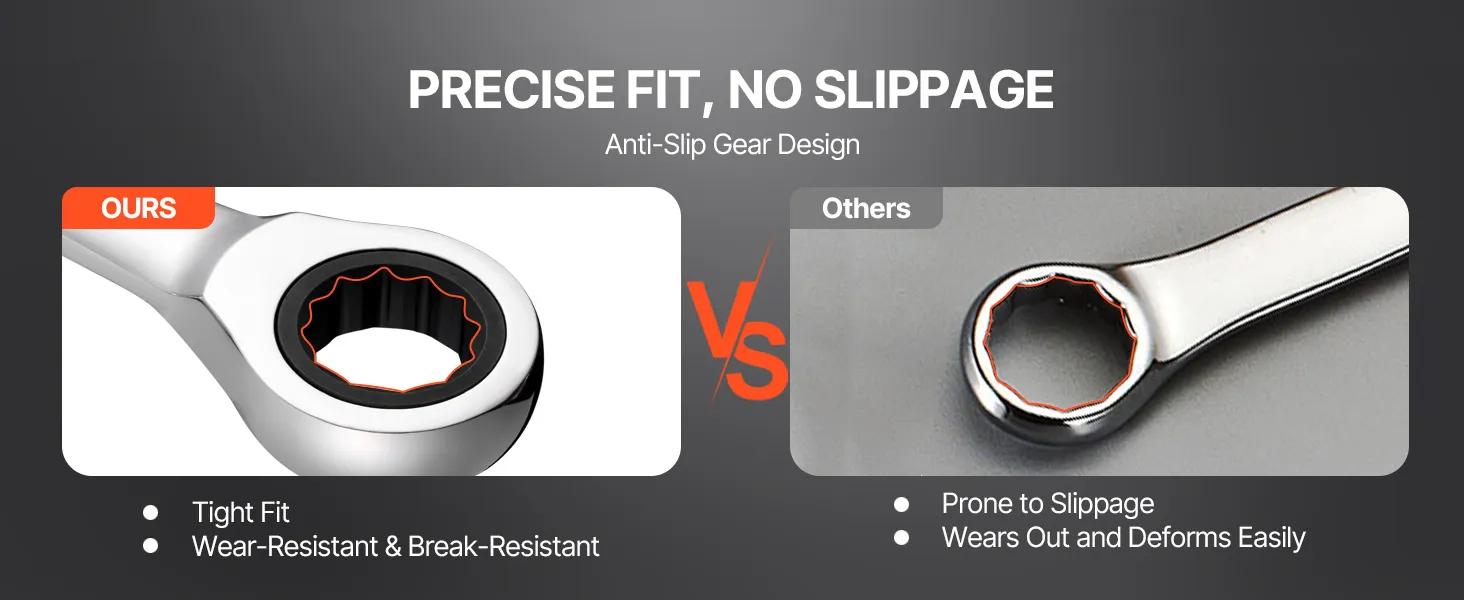 The slip-resistant gear design of our combination wrench set reduces slippage and helps save effort, making your tasks more efficient.