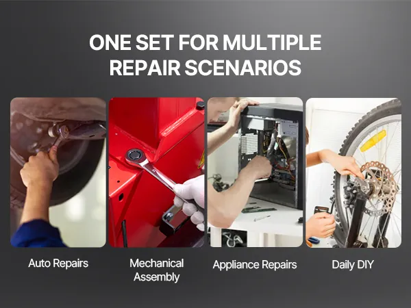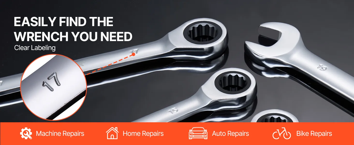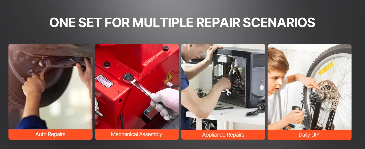 This labor-saving ratchet wrench set is ideal for various tasks, including automotive repairs, mechanical maintenance, and household fixes.