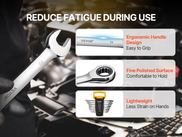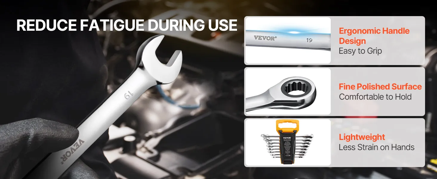 Our ratcheting wrench set features an ergonomic design, providing a comfortable grip for your easier operation.