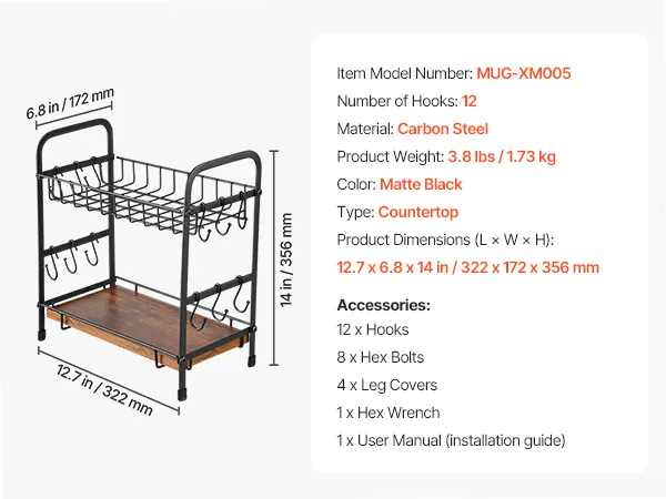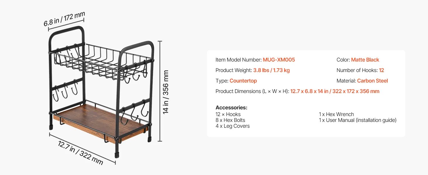Space Saving: The countertop coffee bar organizer measures 12.7 x 6.8 x 14 in / 322 x 172 x 356 mm. Its compact design takes up minimal space while keeping things organized and freeing up valuable countertop space