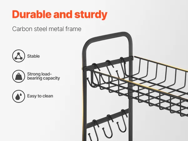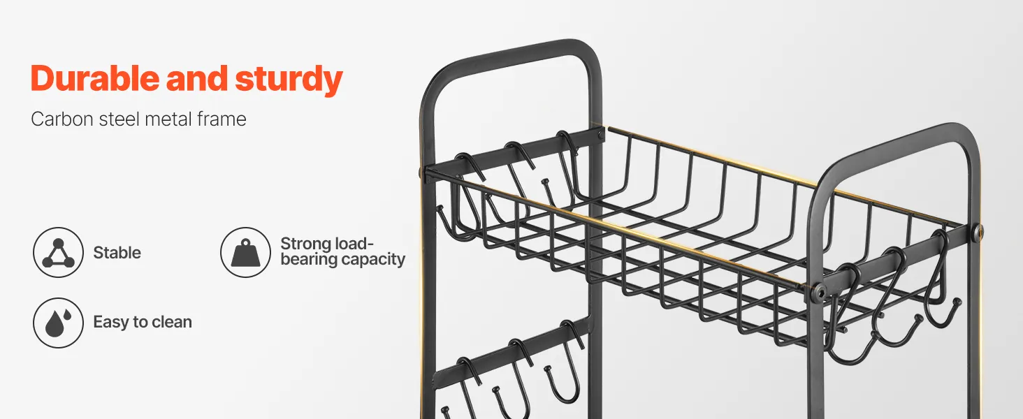 Durable & Stable: Made from quality carbon steel, the coffee rack offers strong load-bearing capacity, is resistant to deformation, and is both sturdy and durable. The metal surface is smooth to prevent scratches