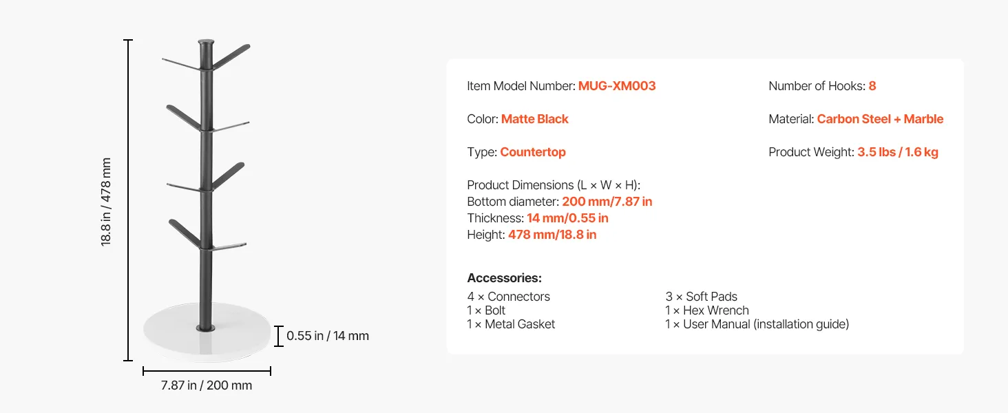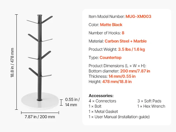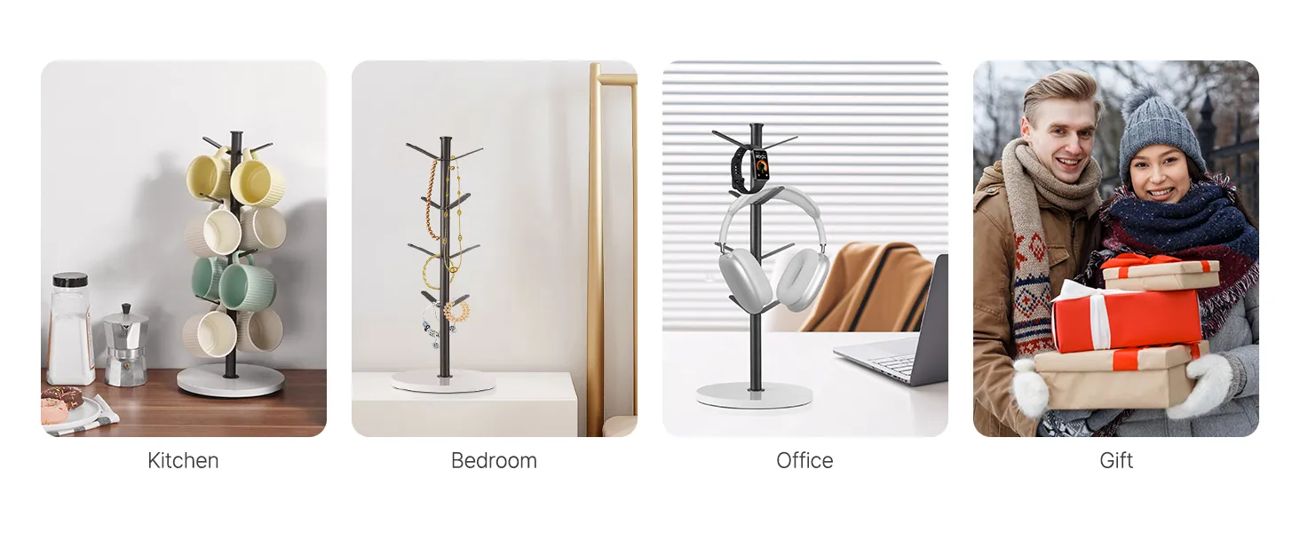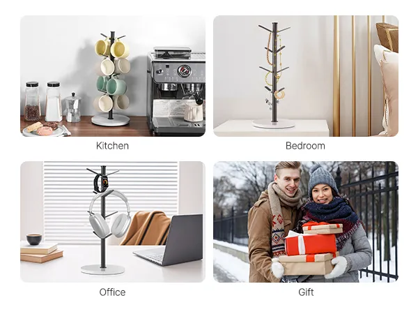 The mug tree helps you make the most of your space, and freely place it in your office, kitchen, or home. It aids in organizing and storing coffee mugs, as well as accessories and more items, keeping your counter neat and orderly.