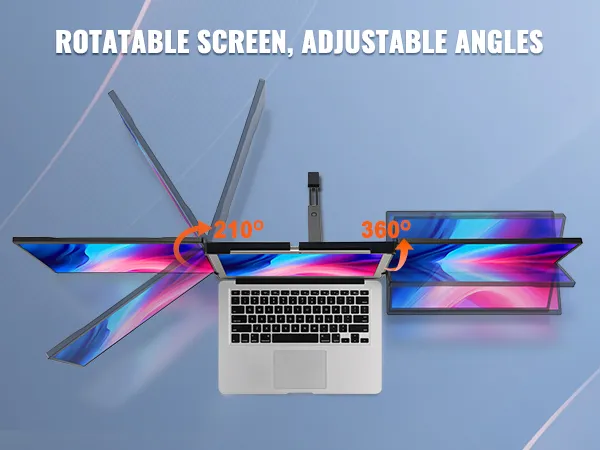 Deze monitor extender sluit rechtstreeks aan op laptops en maakt het mogelijk om meerdere schermen te gebruiken. Het scherm kan tot 210 graden worden gedraaid, ideaal voor videoconferenties, kantoorpresentaties, huiswerk of reizen.