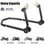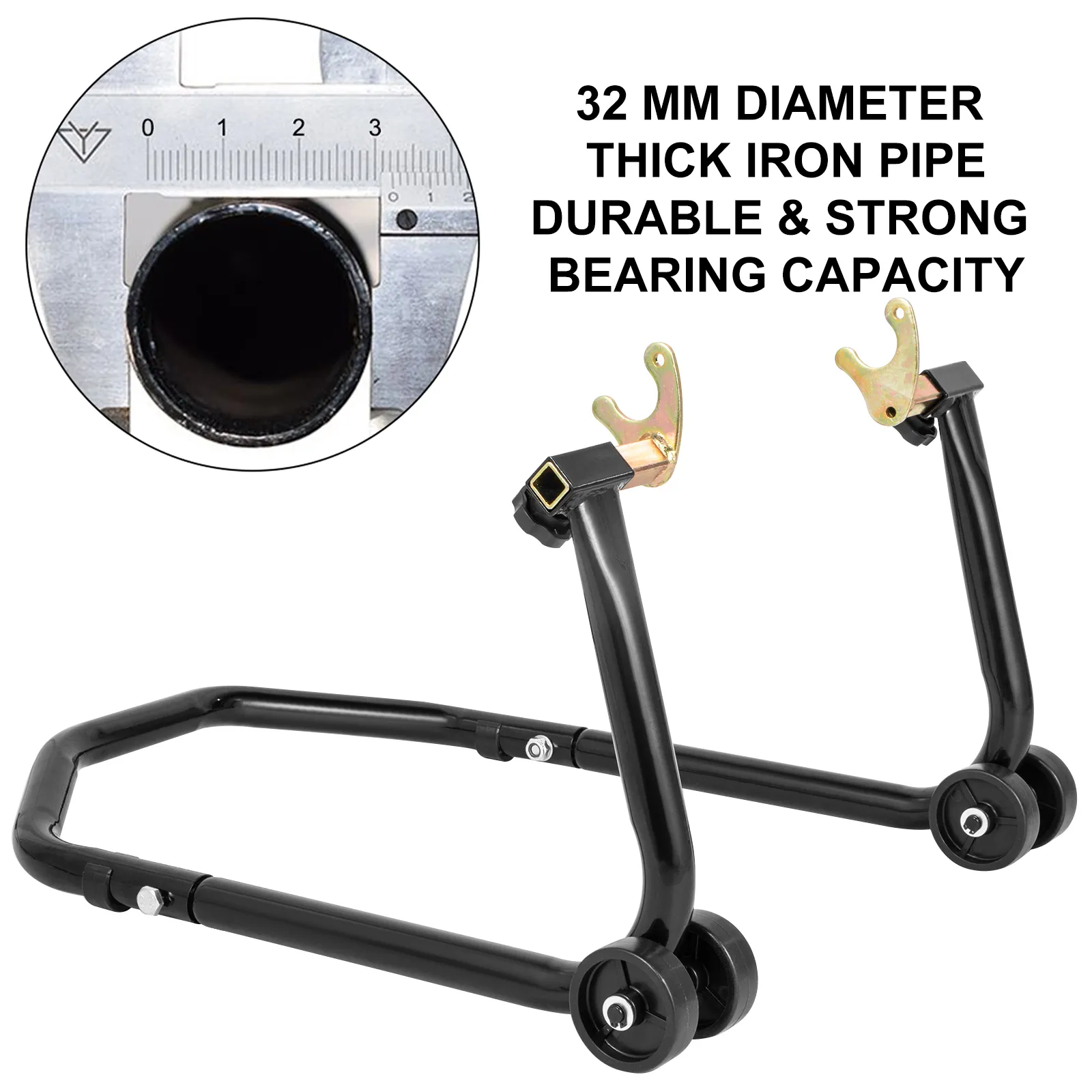 【DUURZAAM IJZER MATERIAAL】 - De beugel van de achtervork maakt gebruik van hoogwaardige ijzeren pijpleidingen met een diameter van 32 mm, die 300 kg motorfietsen kan dragen en een breed scala aan toepassingen heeft. Het oppervlak is behandeld met zwarte lak, slijtvast en duurzaam, niet gemakkelijk te roesten.