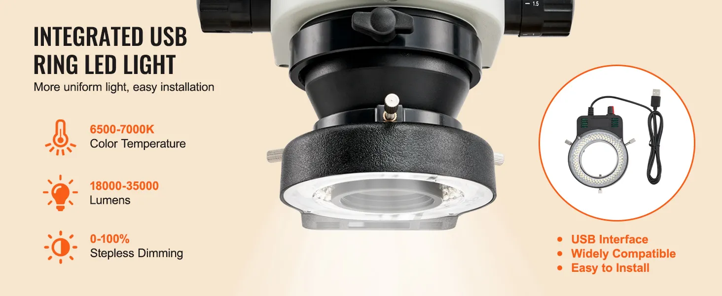 Integrated Ring LED Light: The integrated design ensures more even lighting and easier installation. With 144 LED lights providing ample illumination at 18000-35000 lumens, it clearly presents the details of the jewelry. The microscope jewelry inlaid stand uses a USB interface for more convenient installation.