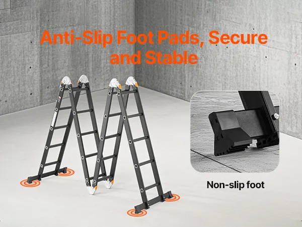 Deze ladder kan eenvoudig worden omgezet in een A-vorm, M-vorm, laddervorm, L-vorm, platformvorm, opvouwbare vorm of rechte vorm, waardoor een ongeëvenaarde veelzijdigheid wordt geboden voor een breed scala aan taken.