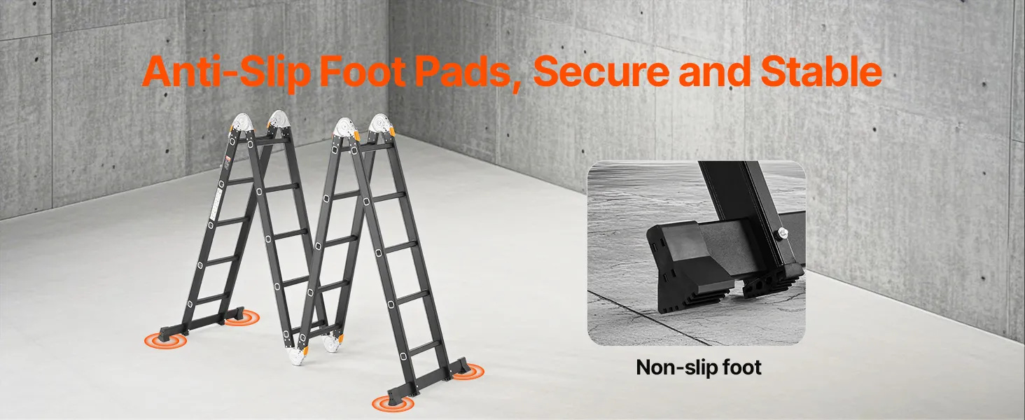 Veiligheid en stevigheid: deze ladder is gemaakt van verdikt aluminium en kan maximaal 149,7 kg dragen. Het is robuust, duurzaam en bestand tegen buigen of vervorming. Uitgerust met twee antislipvoetjes, biedt hij extra stabiliteit en wiebelt hij minder, waardoor uw veiligheid tijdens het gebruik wordt gegarandeerd.