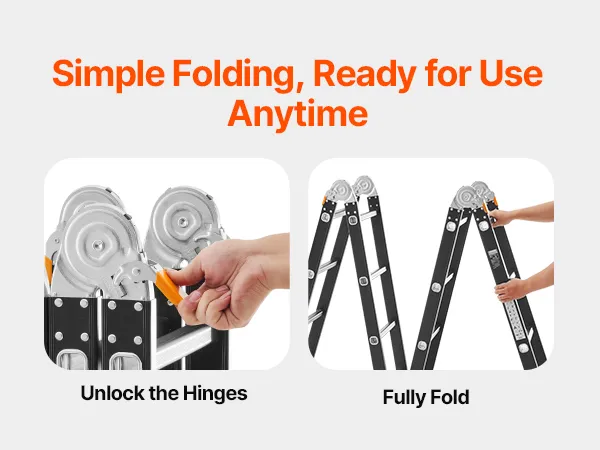 Lichtgewicht en gemakkelijk op te bergen: deze ladder weegt slechts 14,6 kg en is gemakkelijk te dragen en te verplaatsen. Wanneer hij volledig is opgevouwen, kan hij gemakkelijk in elke hoek worden opgeborgen om ruimte te besparen.