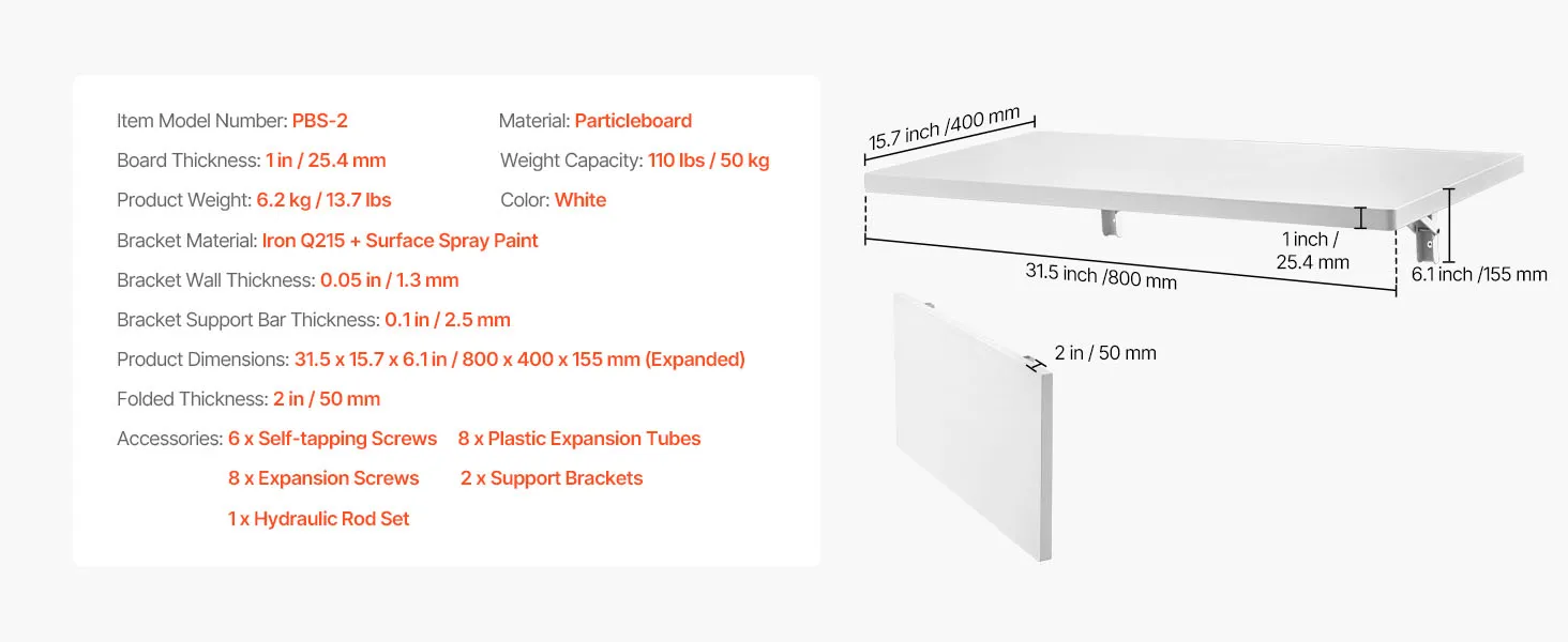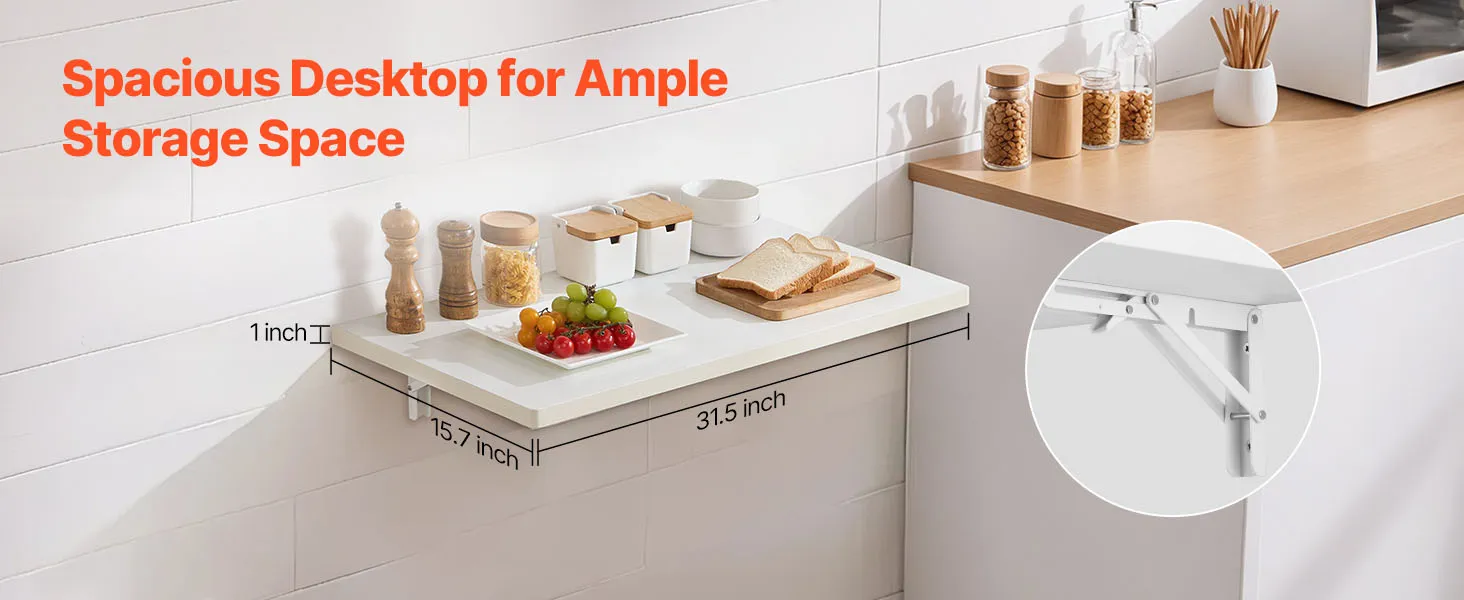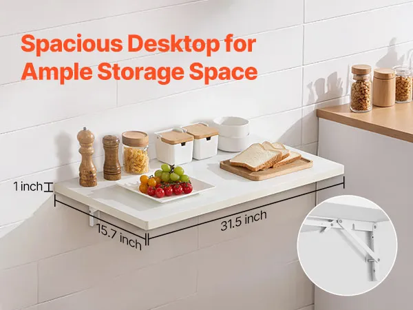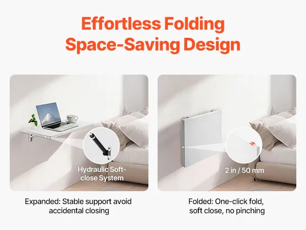 One-touch Folding: Simply press a button to fold the wall mounted table, saving 2 inches of space when not in use. The hydraulic mechanism ensures smooth, secure closing, so no more pinched fingers—just pure convenience