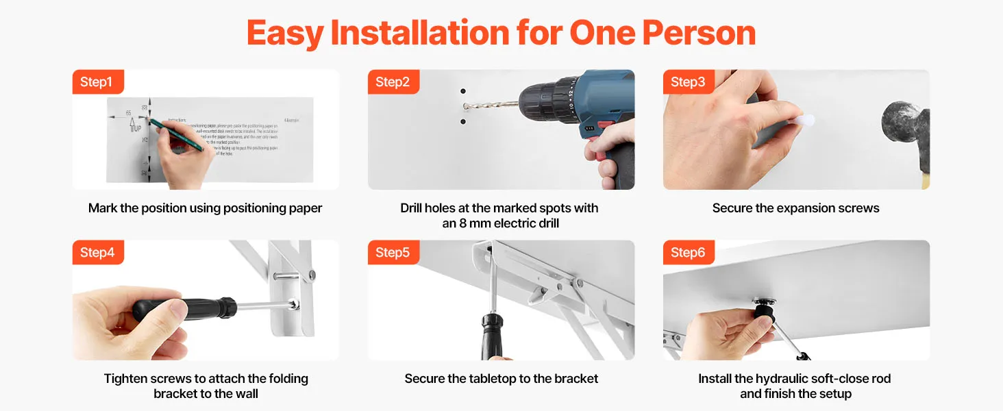 No stress here! With easy-to-follow instructions and positioning paper, even beginners can set up in no time. Quickly add this wall mounted table to your home with minimal effort.