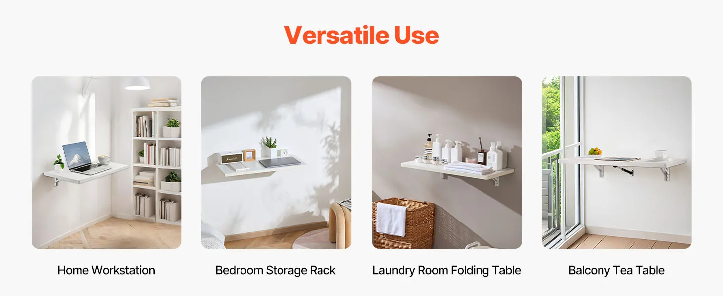 Versatile Use: This sleek wall mounted folding table fits anywhere—from home offices to laundry rooms, study areas to the living room. It’s ideal for transforming any space into a functional, stylish spot