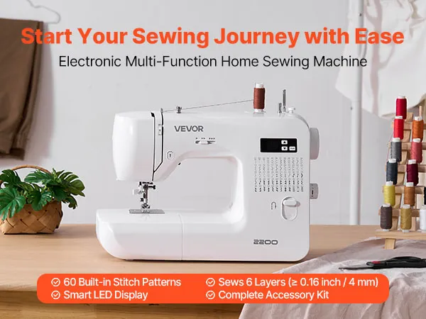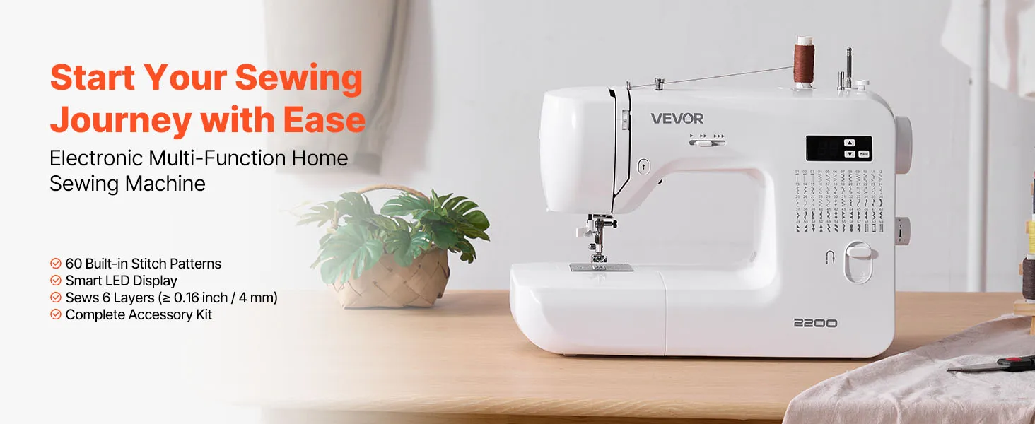 VEVOR Geautomatiseerde naaimachine met 60 steektoepassingen, LED-scherm, pedaal en LED-lampje, robuust metalen frame, digitale naaimachine met krachtige motor voor knutselen en repareren, wit