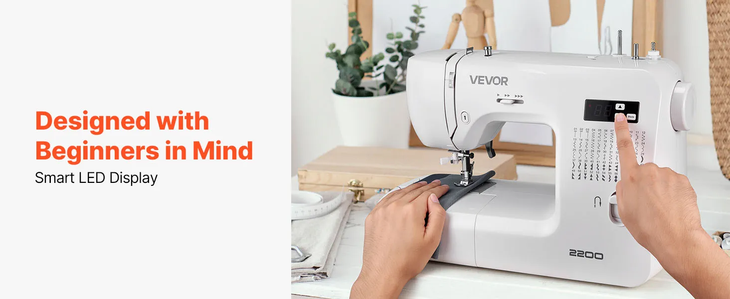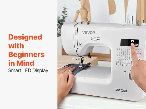 Het led-display maakt eenvoudige steekselectie mogelijk met duidelijke, intuïtieve pictogrammen. De naaldpositie, steeklengte en -breedte zijn vooraf ingesteld en de steekspanning, -breedte en -lengte zijn instelbaar. Onze digitale naaimachine is ideaal voor zowel beginners als ervaren naaisters.